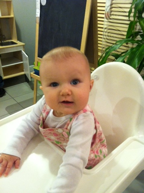 And a bonus lesson: Anything that is fun (and we happen to find IKEA to be fun) is even more fun if you add Baby Lillian!  Here she is checking out an IKEA high chair in a demo kitchen: